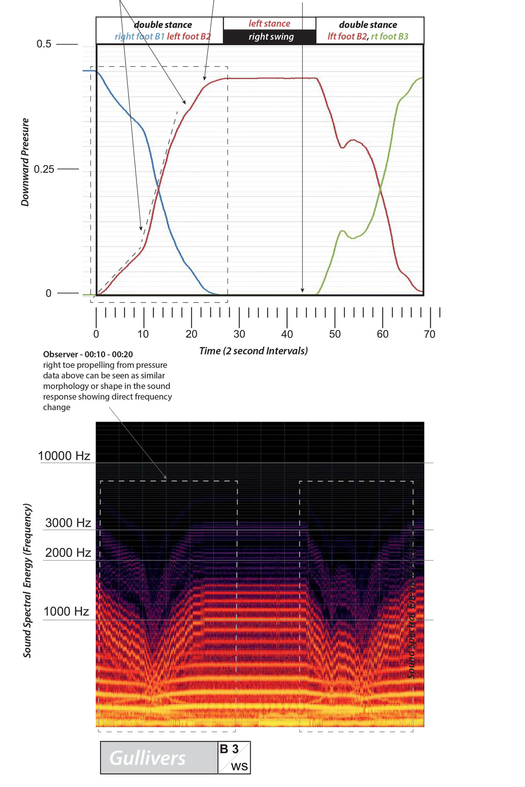 Using continuous streams of Audio-Biofeedback has advantages over visual feedback in that it can be confined to the periphery of attention and is spatiotemporally well suited to provide information on the efforts and rhythms unique to walking, balancing and range of motion exercises in personal rehabilitation programs. With the ubiquity of earbud-style Bluetooth headphones, we see the opportunity for sound, driven by data from wearable sensing devices, to provide unique patient-specific spatiotemporal information to aid in their rehabilitation programs. This project explores the use of movement-controlled Continuous Auditory Feedback (CAF), to enhance motion awareness and motivate human movement. The results from a preliminary user study indicate a relationship between CAF and the phases of the walking gait, particularly the anticipation of the footstep. From this preliminary study, we conclude that CAF has the potential to inform human movement for health and rehabilitation. Further case studies will combine design and human-computer interaction knowledge with Biomedical Engineering and Biomechanics.