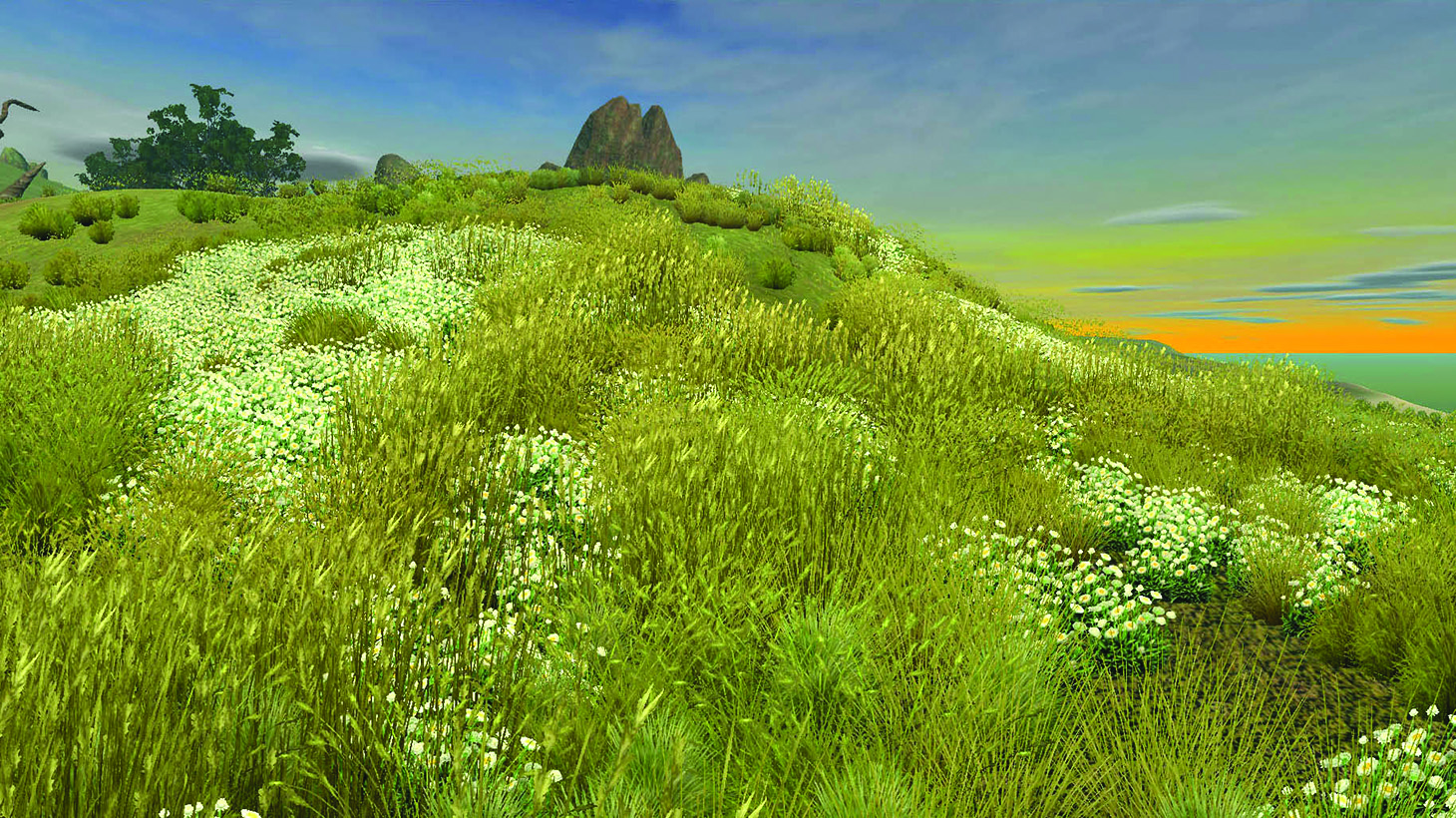 Locus Amoenus (Place of Delight) is an ambient audio-visual installation in a public hospital lounge that was conceived to foster calm, focus and place making for the general public. The large screen component depicts a window-like view of a naturalistic landscape that is sometimes roving, sometimes resting, and perpetually animated. This real-time audio-visual artwork represents the local weather through wind, rain, cloud cover and visibility (driven by actual real-time data) and the natural passage of diurnal light from a virtual sun that is synchronised to the geolocation of the hospital site. (Contribution, Application, Collaboration, Aspiration).