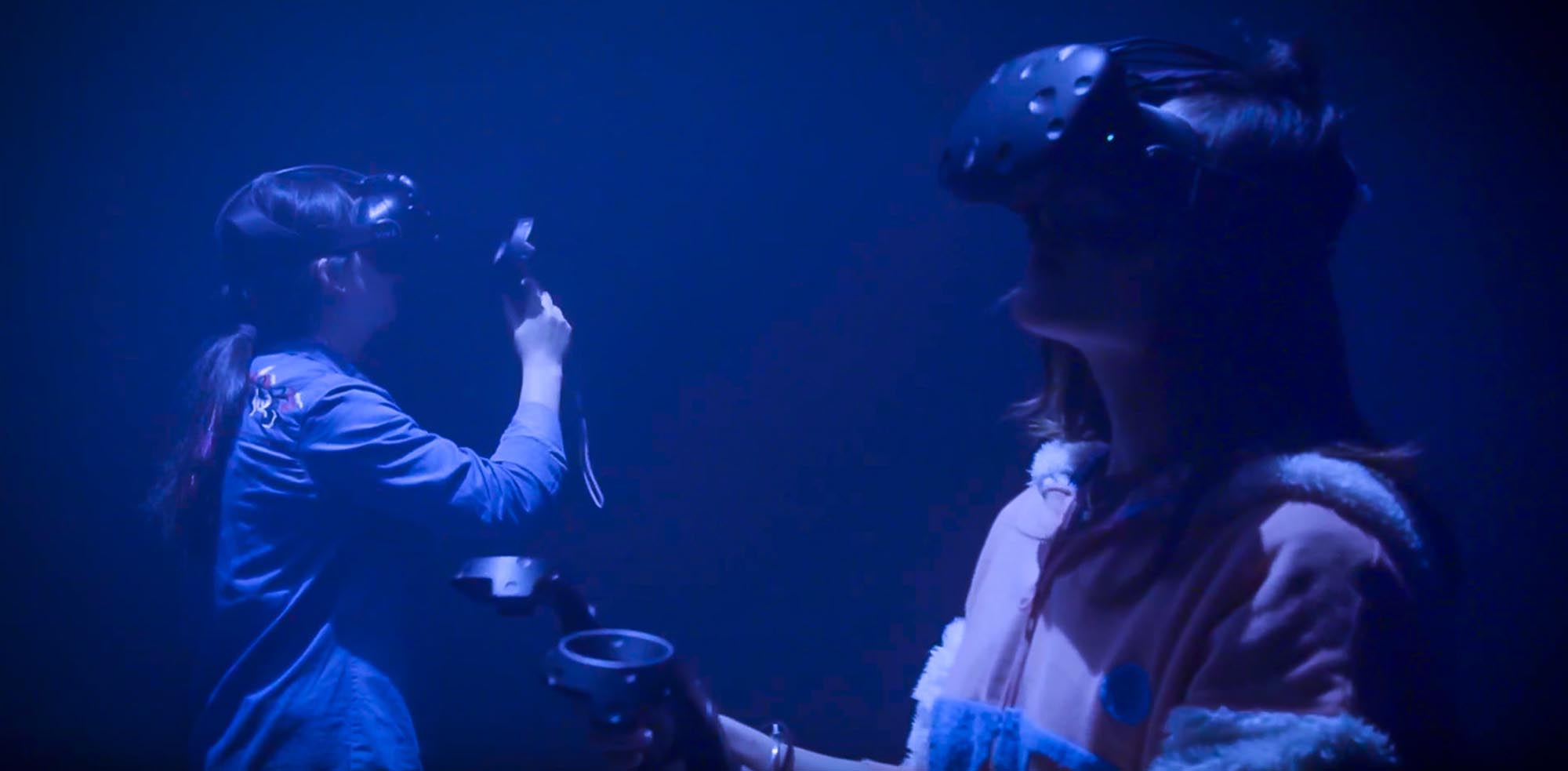 MoCD is a large-scale hybrid system designed to inspire collaborative performance in a colliding physical and virtual space. Deb combined VR with multi-projection mapping, motion tracking, responsive theatre lights, dynamic sound and computer graphics. Friends and strangers quickly learn how to collaborate to control the soundscape and lighting in the real world and the structure and colour of the Platonic Alien World.